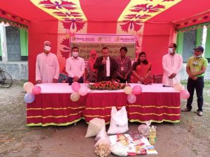 মুসলিম এইড ইউকের অর্থায়নে পবিত্র মাহে রমজানে দরিদ্র অসহায় পরিবারের মাঝে রমাদান প্যাকেজ ৪৫.৫ কেজি করে প্রতিটি পরিবারের মধ্যে খাদ্য সামগ্রী বিতরণ করা হয়েছে । খাদ্য সামগ্রীর মধ্যে ছিল- চাল ২০ কেজি,আলু ৫ কেজি, ভোজ্যতেল সোয়াবিন ২কেজি, মসুরের ডাল ২কেজি,পেঁয়াজ ২ কেজি, লবন ১কেজি,খেজুর২ কেজি, মুড়ি ২ কেজি, ছোলা ২ কেজি, চিড়া ২কেজি, সেমাই ২ প্যাক, নোডুলস ২প্যাক, চিনি কেজি ১ প্যাকেট, গুঁড়ো দুধ হাফ কেজি।